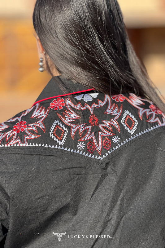 Embroidered Western Yoke Pearl Snap Top Plus Size By L&B