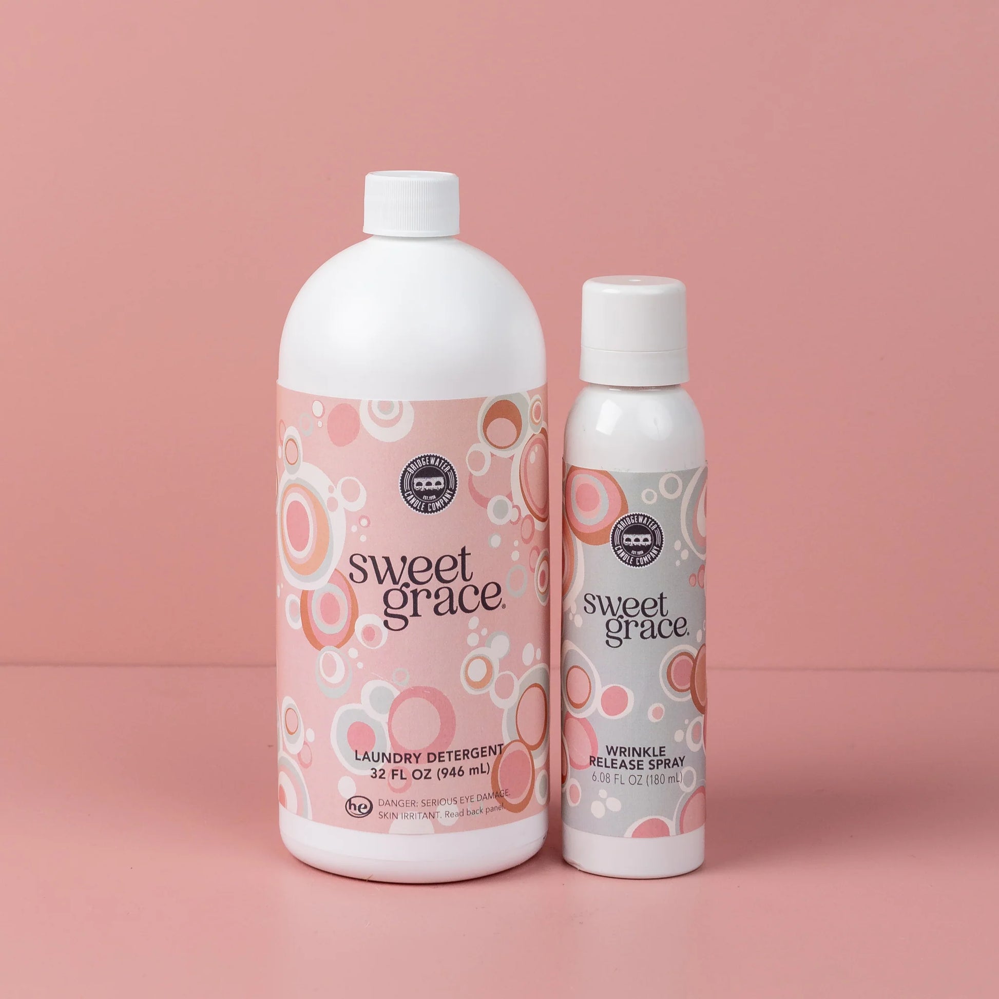 Take laundry day to the next level with the Sweet Grace Laundry Bundle! This bundle includes one 32oz Sweet Grace Laundry Detergent and one Sweet Grace Wrinkle Release Spray. Don’t be surprised if people stop you in the store to ask what perfume you are wearing. It’s THAT good!
