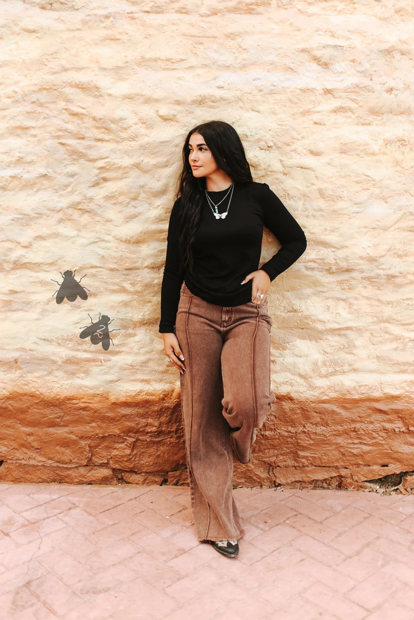 these WHISTLE BRITCHES are HOT. they are basically like the line drives cousin BUT in a wide-leg and different NON STRETCH denim. you got the seam down the middle + raw hem at the bottom.